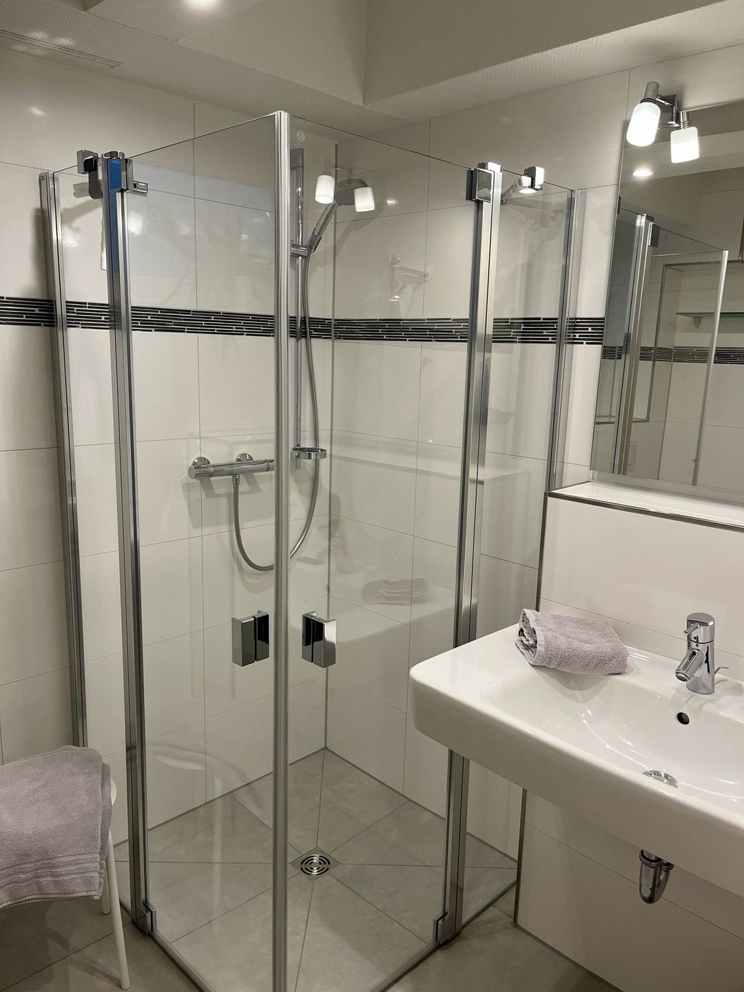 darunter, im Untergeschoss, ein Bad mit Dusche und zwei Schlafräume