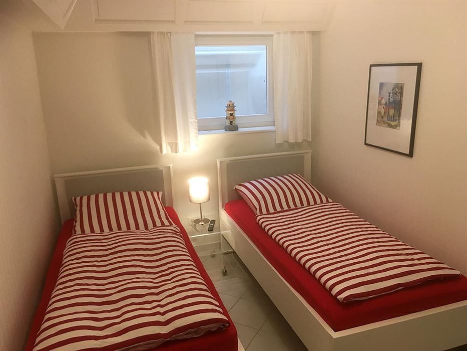 davon ein Schlafraum mit Doppelbett und ein Schlafraum mit zwei Einzelbetten